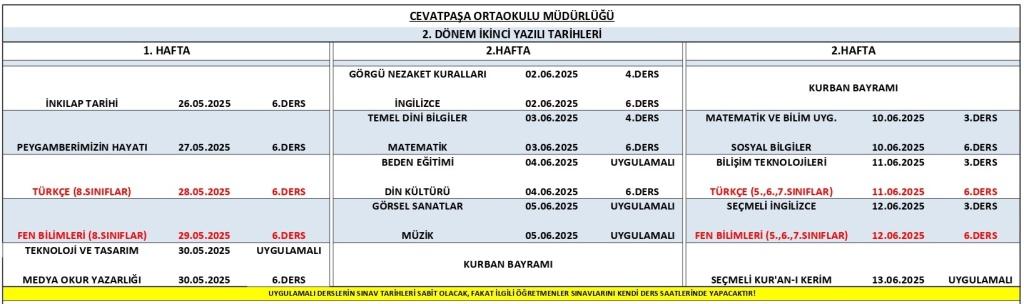 2.sınav takvimi aşağıdaki görselde belirtilmiş olup, yapılacak olan sınavlarda başarılar dileriz.
